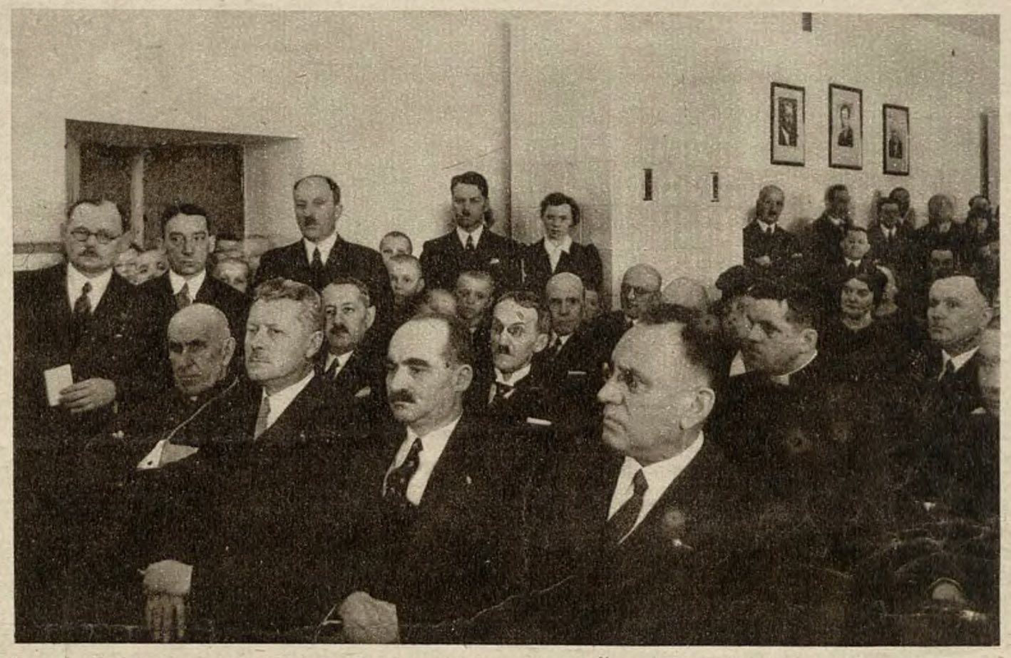Całkiem na lewo stoi bardzo zasłużony około powstania tej instytucji star. pow. dr Wnęk. Wśród obecnych pp.: radca woj. Stańkowski, dyr. Poczt i Tel. Spett, prez. S. D. K. dr Flach, dyr. Koncernu „I. K. C.“ Kaz. Dobija i inni.