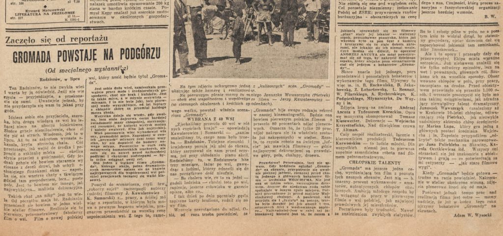 Cofamy się do roku 1951! Artykuł z „Życia Warszawy” pt. „GROMADA POWSTAJE NA PODGÓRZU” odsłania sekrety realizacji filmu „Gromada” w urokliwym Radziszowie pod Krakowem! To był prawdziwy przełom w polskiej kinematografii!